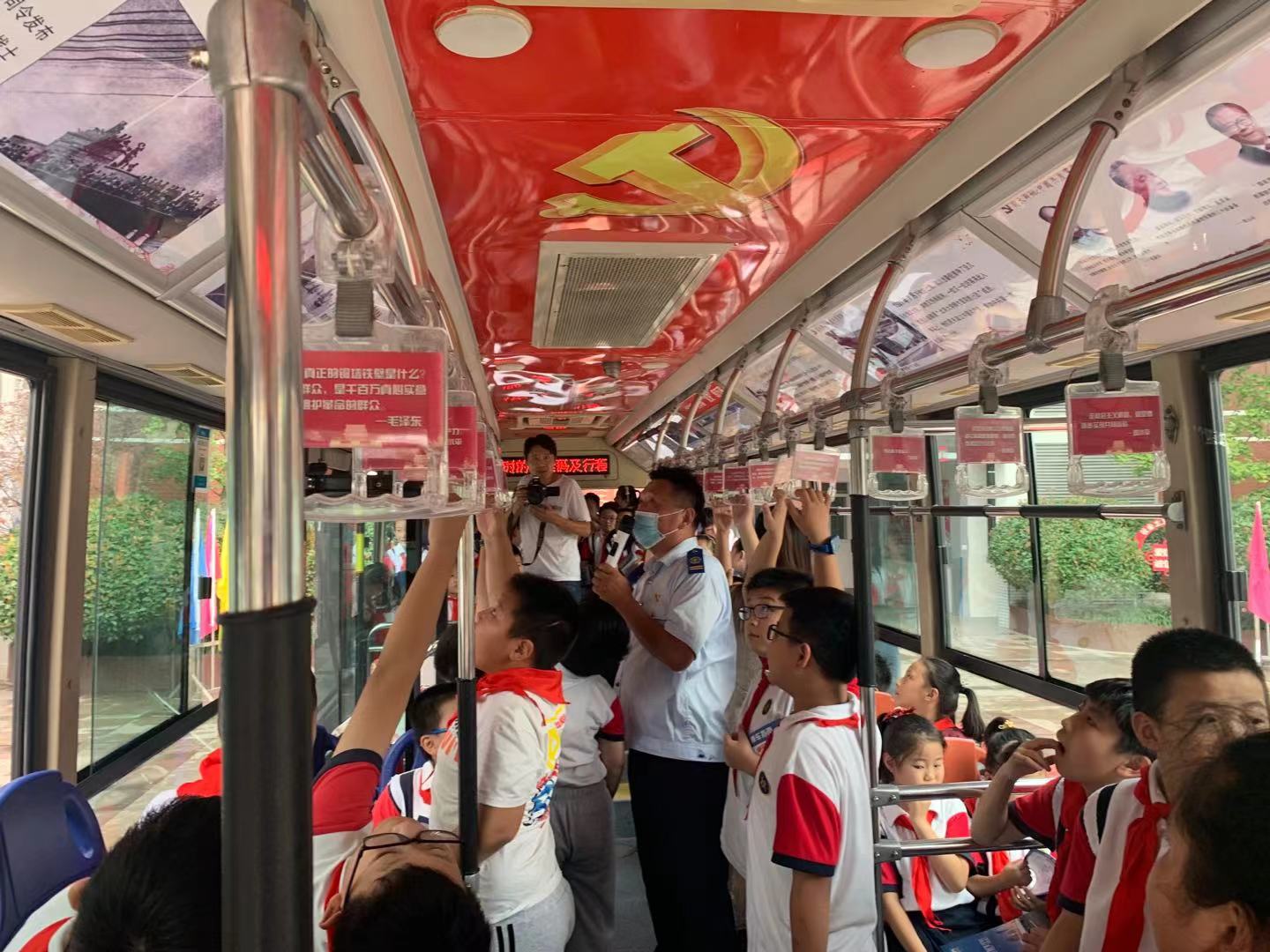 活動中,小學生們走進紅色公交車廂,由公交講解員介紹車廂內各種車載設備的名稱和乘車時的操作流程注意事項等內容。同時,利用紅色公交主題車廂講述一些關于黨的知識和歷史,讓孩子們身臨其境感受黨史學習的氛圍,引導廣大青少年厚植愛黨、愛國的家國情懷,爭做新時代的紅色傳人。隨后,孩子們依次在主題活動橫幅上簽下了自己的名字,并紛紛表示要加入綠色出行行列,爭當綠色出行小先鋒。同時,為了培養孩子們良好的安全文明出行意識,公交集團還將《城市公交車安全告知》宣傳片帶到了課堂上,通過短視頻播放,讓小朋友通過直觀、形象的圖畫掌握過馬路、乘車等基礎的交通安全常識。通過此次活動,宣傳了公交綠色出行,加深了師生們對交通安全知識的了解,增強了自覺遵守法律法規、文明安全參與交通的意識和自我保護能力。