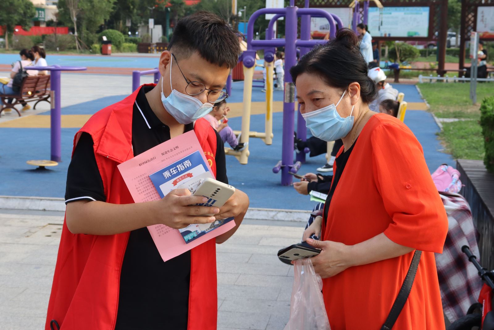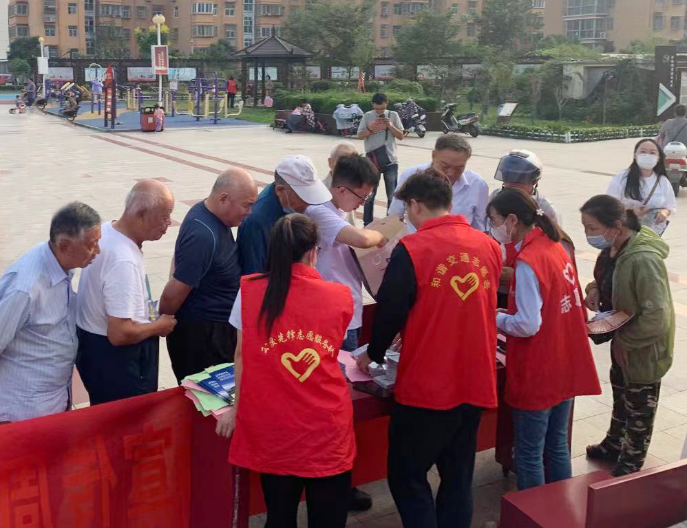 本次活動地點設在海州區新海花園社區,活動現場擺放桌椅、懸掛主題活動宣傳橫幅,15名志愿服務者向社區居民發放公交出行宣傳周活動倡議書、2021年公交出行手冊200余份、公交滿意度調查問卷46份。