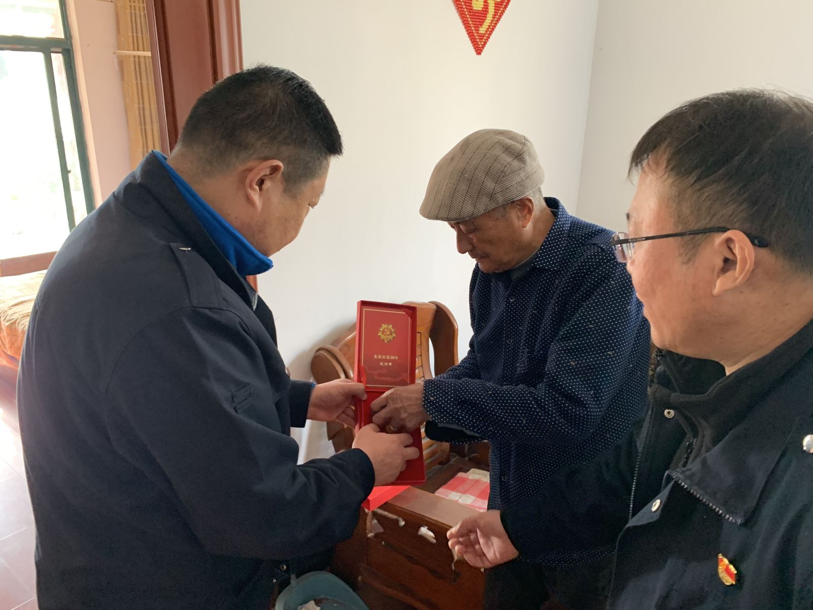 參觀后,在轄區領導的帶領下,支部書記寧濘對轄區困難黨員周大生走訪慰問。周大生大爺86歲,黨齡已有62年,老伴在幾年前去世,子女均在外地,老人現獨自居住在板橋安置小區。在2020年疫情防控期間,周大爺作為社區老黨員,不顧個人安危勇做社區志愿者,積極戰斗在疫情防控的第一線,得知這一情況,支部全體黨員深受感動。通過與老人親切交談,詳細了解老人的飲食起居和身體狀況、生活情況以及存在的困難,同時為周大爺送上米、面、油等慰問品。