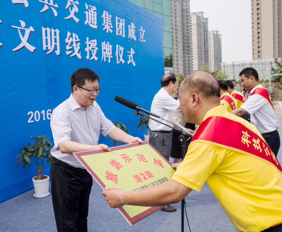 儀式上,副市長尹哲強、孫宗風局長、劉永能書記、仲偉濤總經理為B12、3路、游2路、游3路四條公交線路授予“誠信文明線”、“創新服務線”、“旅游示范線”。被命名的四條公交文明線,既有涉及廣大產業工人出行的B12線,又有我市傳統城鄉公交3路線,還有通達我市花果山、連島景區的游2、游3路公交線,代表性強,涉及面廣,將通過誠信服務、創新服務、旅游示范線的特色創建,打造公交服務品牌,全面服務我市社會經濟發展,造福港城市民百姓。