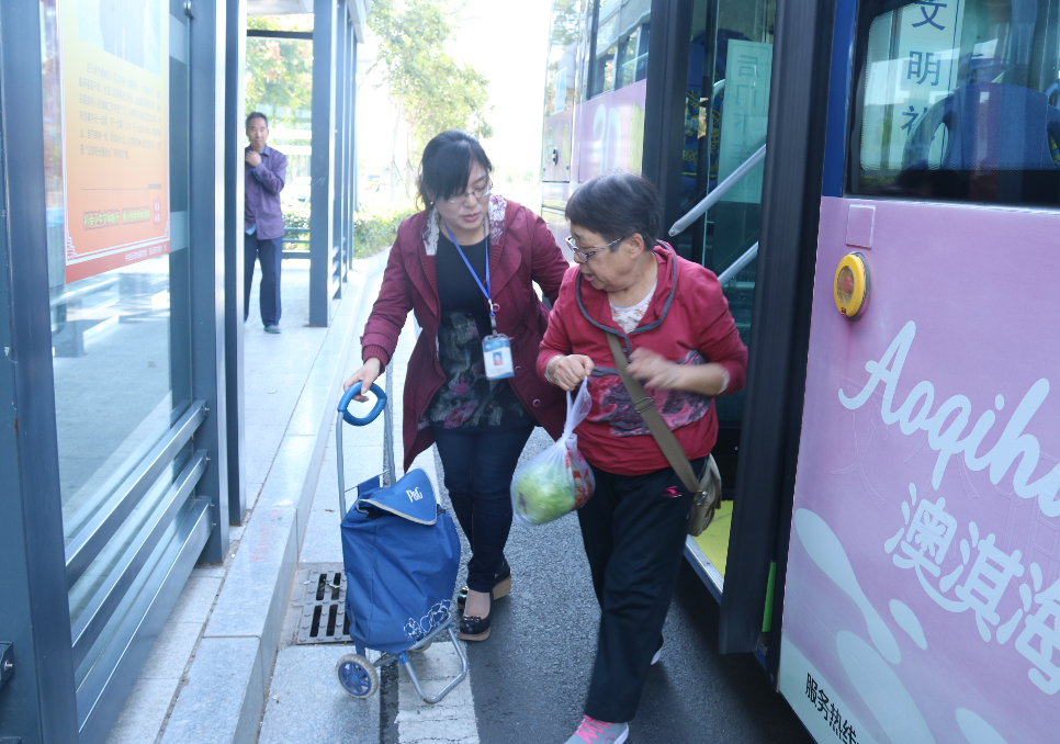 公交海州公司安排志愿服務人員身披綬帶、佩戴上崗證在站臺攙扶老年乘客上下車,主動幫助乘客拎包,向候車的乘客發放公交出行宣傳單,熱情回答乘客的咨詢。為營造孝親敬老服務文化氛圍,公司志愿服務人員一行又共同走進公交25路“敬老文明線”車廂,除發放公交出行線路圖外,還向老年乘客宣傳乘車安全相關知識。活動中,志愿服務人員積極為老年乘客提供乘車方便,認真聽取乘客提出的相關建議,提高老年乘客對公交的滿意度,贏得了老年乘客的一致稱贊,用實際行動送去公交集團的祝福和溫暖。