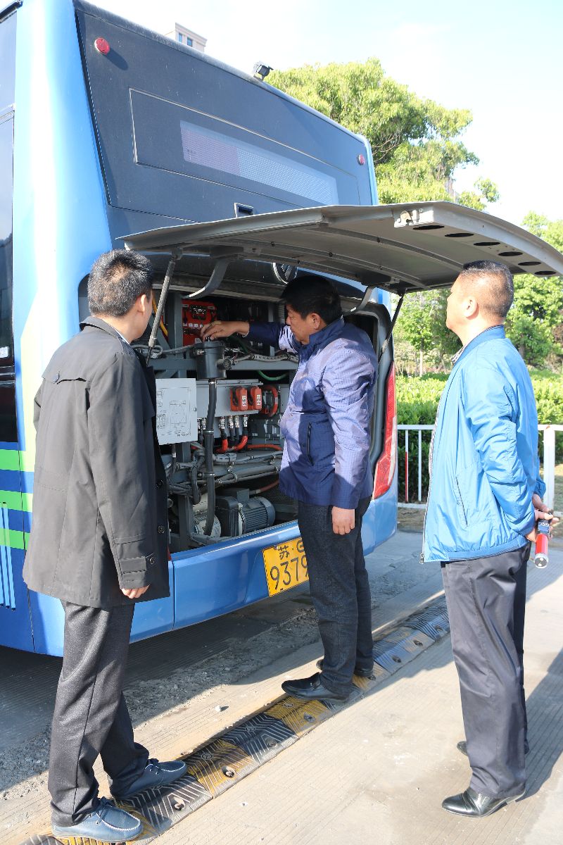 檢查組根據方案,早上6點,分別深入BRT東區、東部公交、新華、西門等東西區19個停車場、始發站和龍河廣場、華北橋、西園路等5個BRT站臺,利用酒精檢測儀隨機抽查駕駛員是否存在酒駕,三證攜帶是否齊全有效,車輛的安全消防設施設備是否完好,場站保衛及值班人員是否在崗、充電人員是否正確佩戴勞動防護用品;現場對駕駛員、站務員、充電人員及保衛人員應急處置和滅火器操作流程是否熟練掌握進行了重點檢查,并要求現場演示,直到過關為止。隨后,又細致排查了各維修車間線路、用電及乙炔氧氣瓶的安全擺放等。