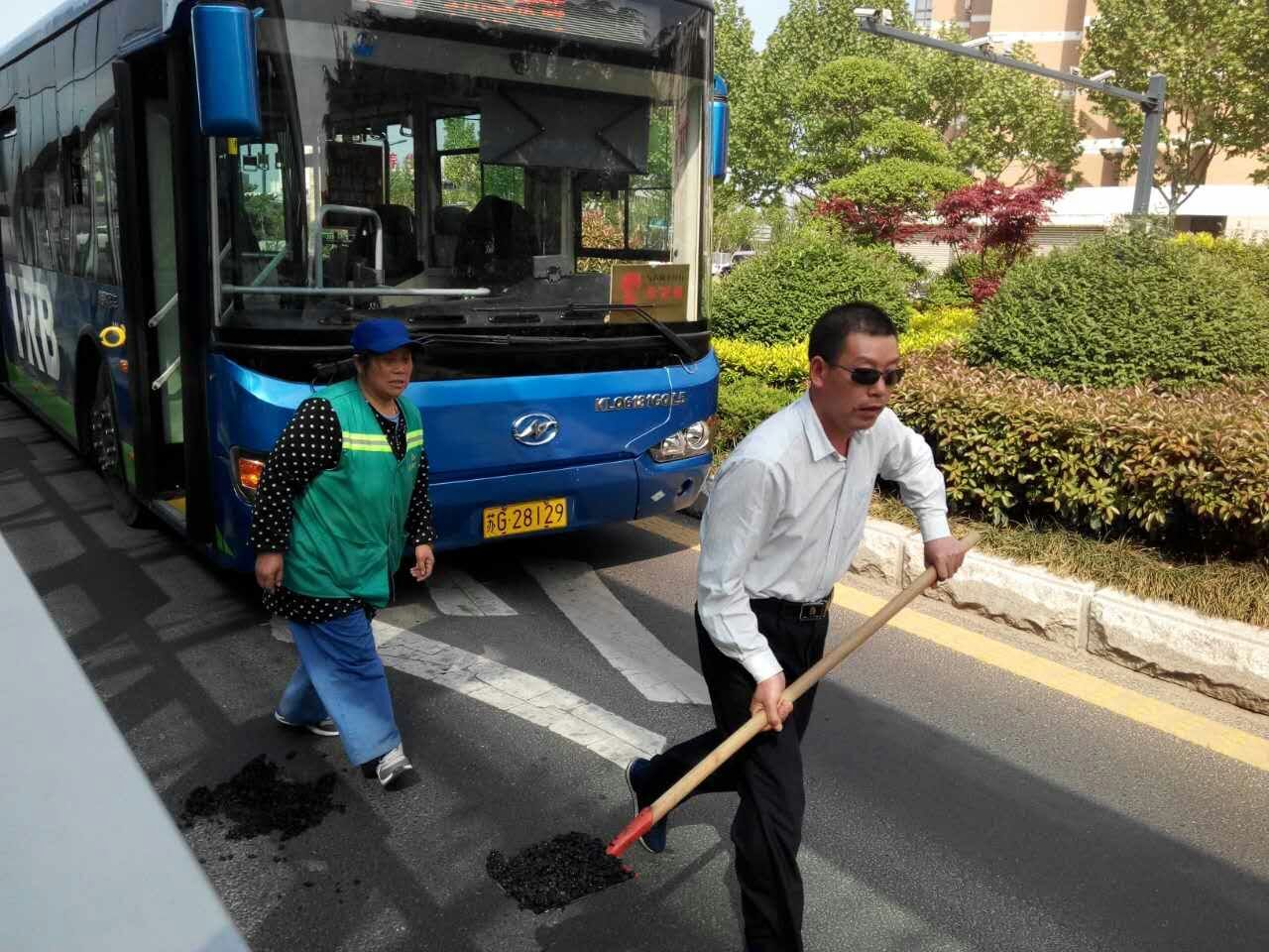 10月6日,海州市民王先生給蒼梧晚報(bào)新聞熱線打電話(huà),點(diǎn)名表?yè)P(yáng)BRT公交車(chē)駕駛員葛二林,說(shuō):“真是讓人感動(dòng),BRT駕駛員為了讓大家更安全更舒適地乘坐車(chē)輛,拎著鐵桶修補(bǔ)路面。”葛二林是個(gè)公交車(chē)?yán)纤緳C(jī),多年的工作讓他對(duì)交通安全有種本能的關(guān)注。每天在BRT一號(hào)線上來(lái)來(lái)回回,葛二林發(fā)現(xiàn),宋跳站附近的公交車(chē)道上,不知什么時(shí)候被壓出了一個(gè)個(gè)大小共有12個(gè),最深的地方足有近20厘米深。次次經(jīng)過(guò)都要“被坑”,乘客們抱怨,他也心疼自己的公交車(chē),尤其擔(dān)心路面塌陷帶來(lái)的交通隱患。于是,他合計(jì)著一定要把坑填一填。葛二林用了近一個(gè)小時(shí),和站務(wù)員劉雪一桶一桶的把坑填平,此善舉感動(dòng)了站內(nèi)的乘客和正在跑班的駕駛員,乘客紛紛拿手機(jī)拍照,駕駛員鳴笛稱(chēng)贊。其實(shí)這已經(jīng)不是他第一次主動(dòng)修整路面了,每逢天氣炎熱,BRT專(zhuān)用道站臺(tái)安全門(mén)路面總會(huì)凹凸不平,一塊塊“頑疾”,影響著來(lái)往的車(chē)輛,乘客坐在車(chē)上也很不舒服,為此他特地備置了工具筐、鐵鎬、瀝青塊等家伙什,等到自己休息時(shí),前后修整了光明小區(qū)站、自來(lái)水公司站、移動(dòng)公司站、院前站、嘉瑞寶廣場(chǎng)站等8個(gè)站點(diǎn)路面。葛師傅說(shuō),路鋪平了,乘客舒坦,他開(kāi)起車(chē)來(lái)也安心。“別的司機(jī)看到路鋪平了,都沖我鳴喇叭、豎大拇指!”得到大家的肯定,葛二林開(kāi)心的笑了。