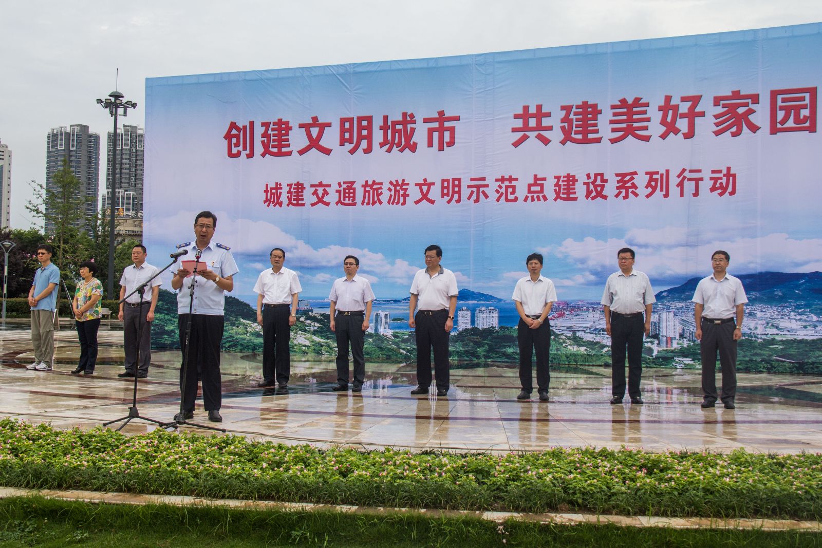 7月15日上午,連云港市城建交通旅游文明示范點建設推進會在蒼梧綠園中心廣場舉行,本次推進會的主題是“創(chuàng)建文明城市,共建美好家園”。公交集團領導班子成員、機關部室全體干部職工、基層單位管理人員等100名員工參與本次推進會。