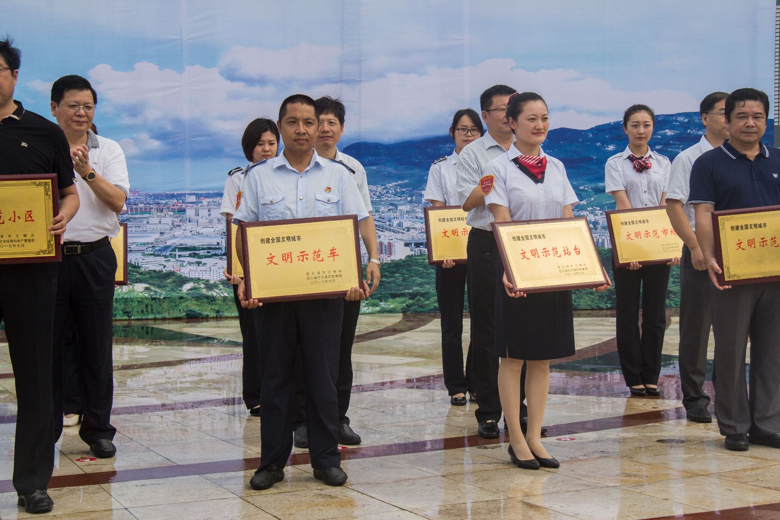 最后,市有關領導為公交集團“文明示范車”、“文明示范站”進行授牌。