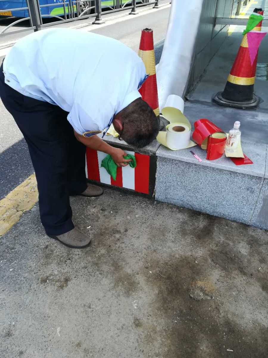 自連云港全面啟動文明城市創建工作以來,公交快速公司總務科為響應創文號召積極開展多項工作。尤其是7月以來創文迎檢進入“倒計時”,港城頻發高溫及暴雨天氣,公交快速公司總務科的站臺維修工作強度及難度也隨之大大增加。室外溫度持續高溫,酷暑難耐,總務科智能化維護人員仍然頂著烈日奮斗在站臺創文一線,先后聯系廠家加裝站臺安全護欄,引導乘客文明進站、文明乘車;修復站臺大面積破損地膠,保證站臺美觀性及安全性;排除空調故障,確保票房及設備間內各設備正常運行;在站臺護欄及對危險路段的站臺尾部基座張貼反光貼,有效預防站臺安全事故;并在安全門地面處粘貼黃色警示標,規范乘客乘車秩序。7月22日至7月23日總務科智能化維護人員更是冒著近40度的烈日高溫,積極配合安全科開展站臺安全隱患大檢查,確保站臺硬件設施正常運行。
