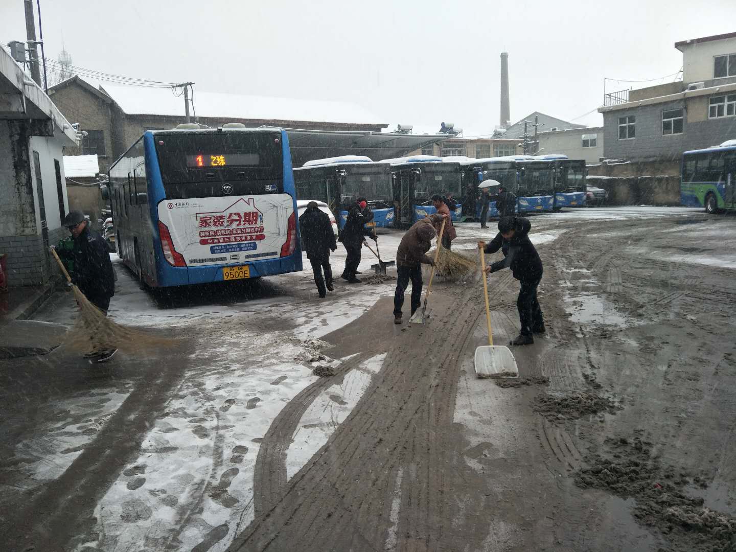 為保證全市公交線路首班車按時準點出發,公交集團生產運營人員全員出發,提前到崗,清掃公交場站內外積雪,為公交車的出行提供便利。