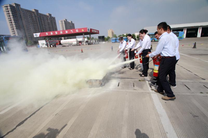 本次應急演練的主要內(nèi)容為公交車突發(fā)事件處置,演練共分為兩個部分,第一項由西區(qū)安全員劉海東對新入職員工講解滅火器的正確使用方法及日常工作中檢查的注意事項。第二項,針對近期日益嚴峻的安全環(huán)境模擬運行中的公交車遇車突發(fā)人為縱火,駕駛員采取應急處置措施疏散乘客,確保乘客安全。