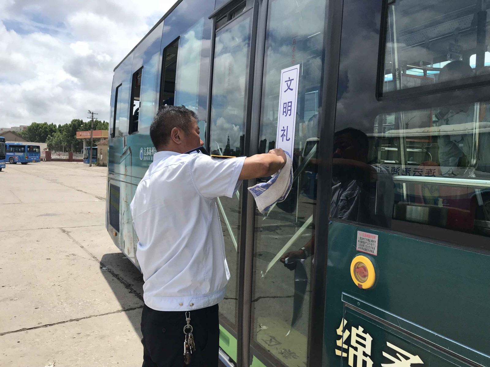 公交集團海通公交公司張貼車輛文明標識營造創文氛圍