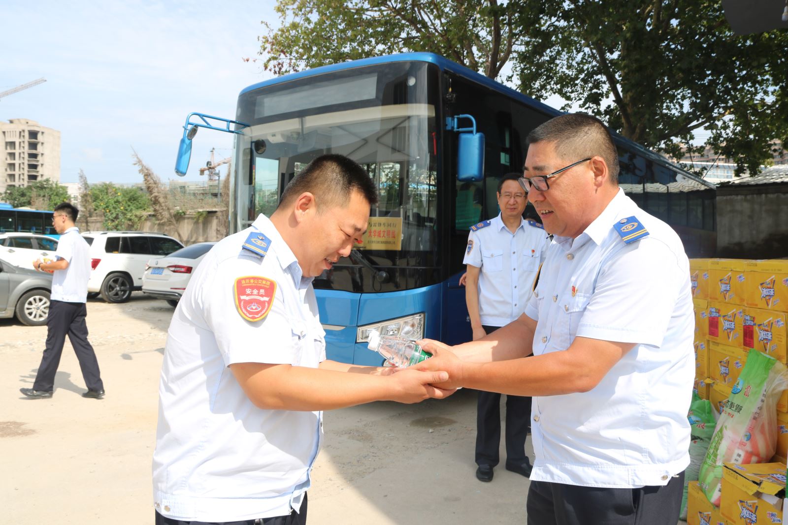 7月27日上午,公交集團(tuán)黨委書(shū)記、總經(jīng)理劉佃華率班子成員走基層,來(lái)到龍河廣場(chǎng)站臺(tái)、西城公交總站、華威停車(chē)場(chǎng)、大浦保養(yǎng)廠和東部公交停車(chē)場(chǎng),為高溫酷暑中堅(jiān)守崗位的一線職工送去了110箱冰紅茶、175箱礦泉水、620斤綠豆和180斤白糖等防暑降溫用品,讓廣大職工感受到夏日里的絲絲清涼和公交集團(tuán)黨委的深切關(guān)懷。