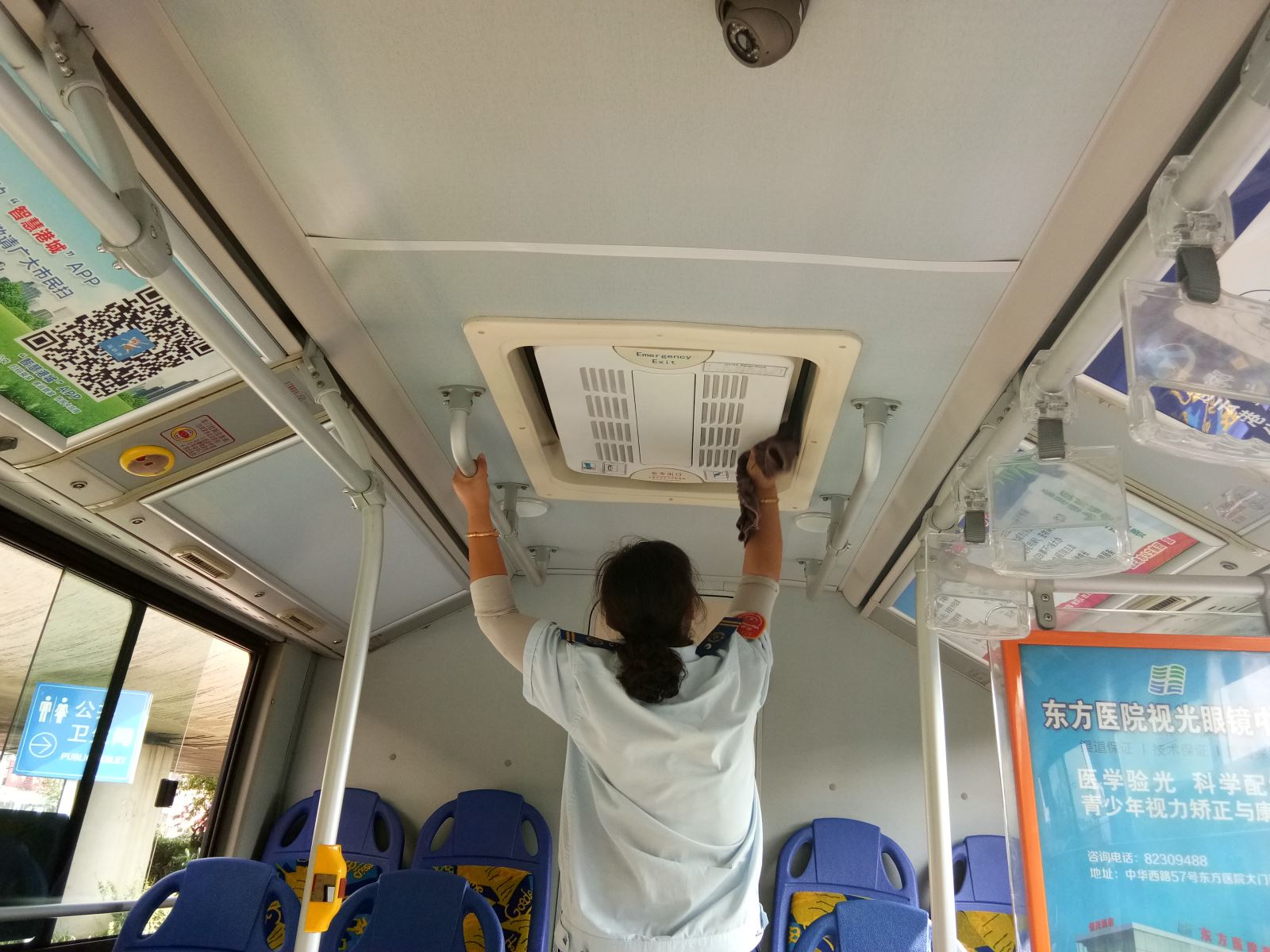 此外,由于國慶長假期間,乘客增多,站點和公交車廂衛生問題也需要各權屬單位需要重點關注,每跑一趟車,駕駛員師傅就要對車廂進行衛生清掃,站務員則定期對站臺進行擦拭,確保每位乘客都能享受到干凈、整潔的乘車體驗。