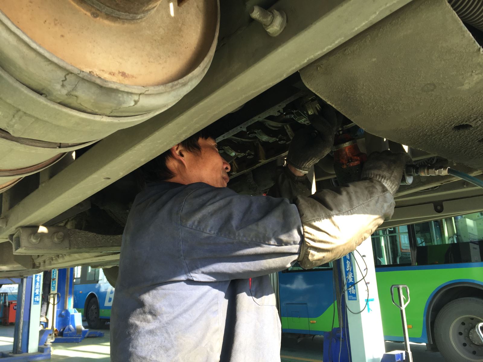 新一年第一天,安機人員認真維護公交車輛,見縫插針檢查車輛的每個細節