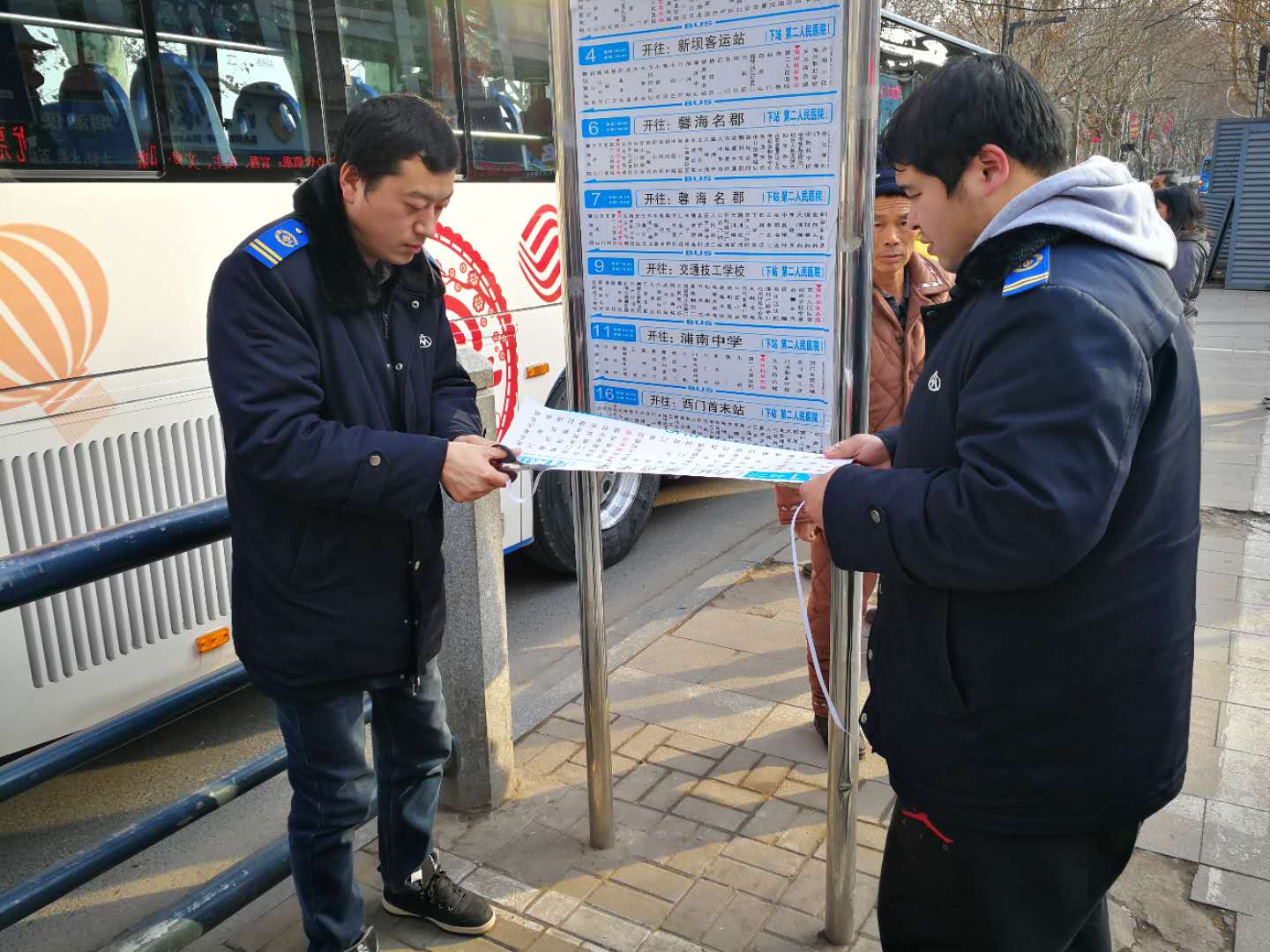 2019年春運(yùn)工作將于1月21日正式拉開(kāi)帷幕,為了在春運(yùn)期間給市民提供一個(gè)環(huán)境優(yōu)美、舒適便捷的出行服務(wù),進(jìn)一步鞏固我市創(chuàng)文創(chuàng)衛(wèi)成果,近期,公交集團(tuán)稽查大隊(duì)組織開(kāi)展市區(qū)公交簡(jiǎn)易式站牌排查整改工作。