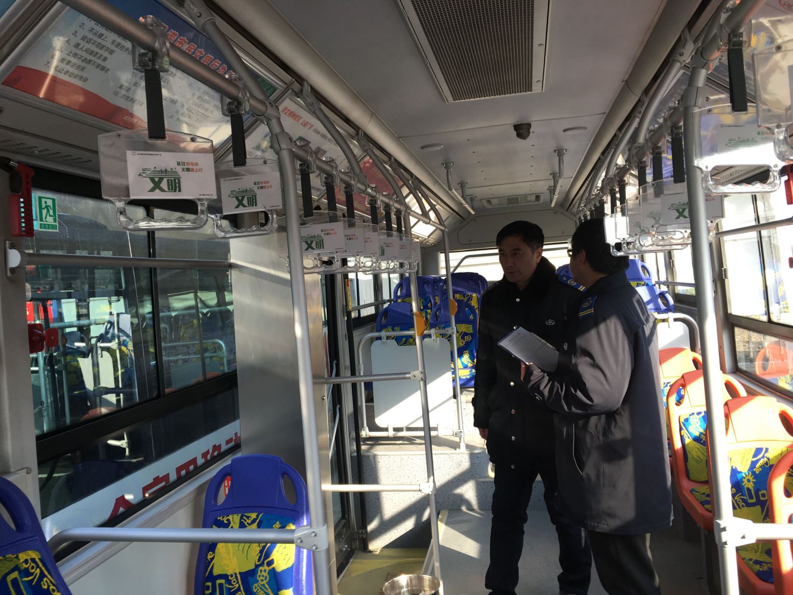 檢查主要內容有:LED顯示屏、創文標識標貼、儀表臺、駕駛室區域、投票箱及前后門踏板等。經統計,本次共檢查車輛215臺次,檢查中車輛創文標貼齊全、大部分車內衛生干凈整潔,對于存在問題的車輛,檢查人員要求立即整改到位。此外,檢查人員還面對面對駕駛員提出要求,要求駕駛員規范著裝,做好服務。臨近春節,出行購物人員增多,一定要多觀察路況,安全駕駛并做好禮讓斑馬線及查堵危險品工作。