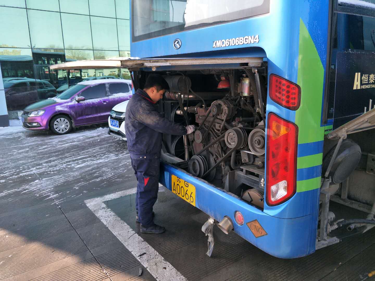 公交機務技術事業部在第一時間響應公交集團安全保衛部通知要求,召集應急救援成員們一起部署應對雪天保障公交車出行搶修工作。1月31日早晨,應急救援小組成員一接到搶修通知,立即趕赴現場進行維修作業,他們克服寒冷,全身心投入到維保工作中,為保障雪天公交車安全運行當好后勤兵。