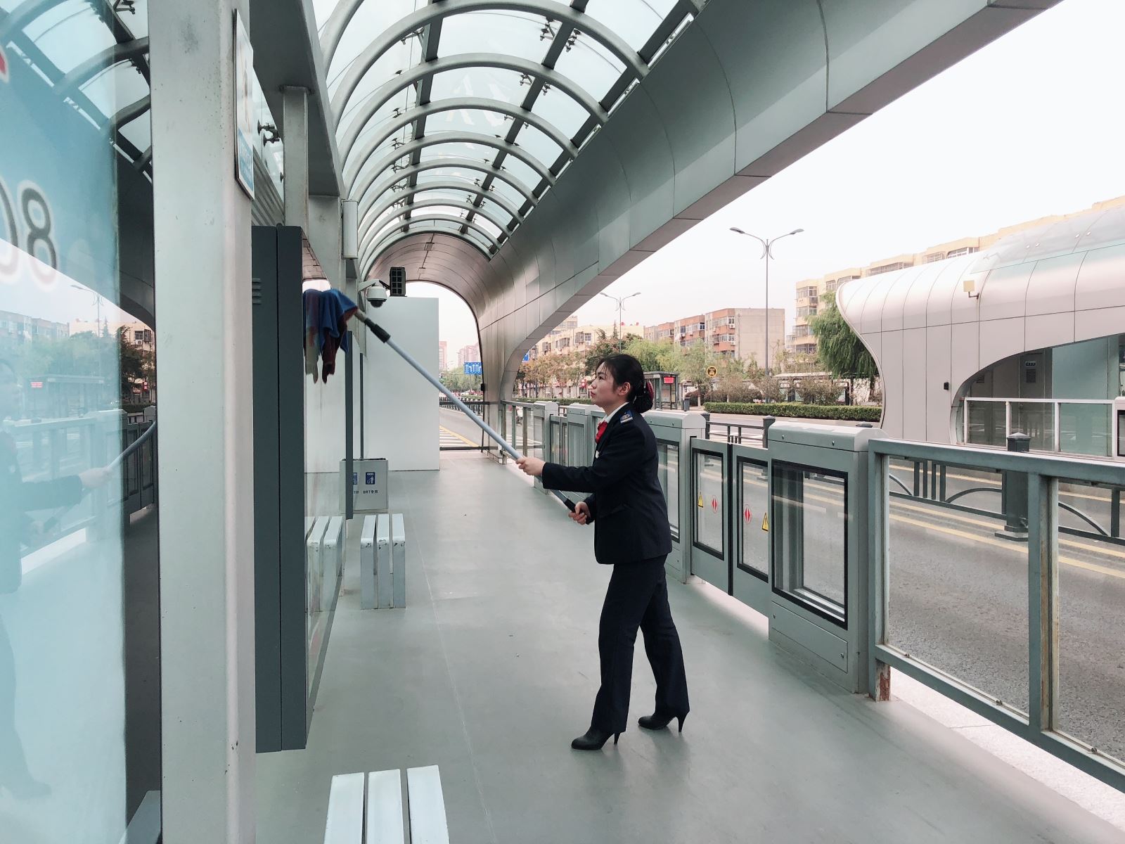 站務員們巾幗不讓須眉,節假日堅守崗位為乘客解答線路問題,打掃站臺衛生