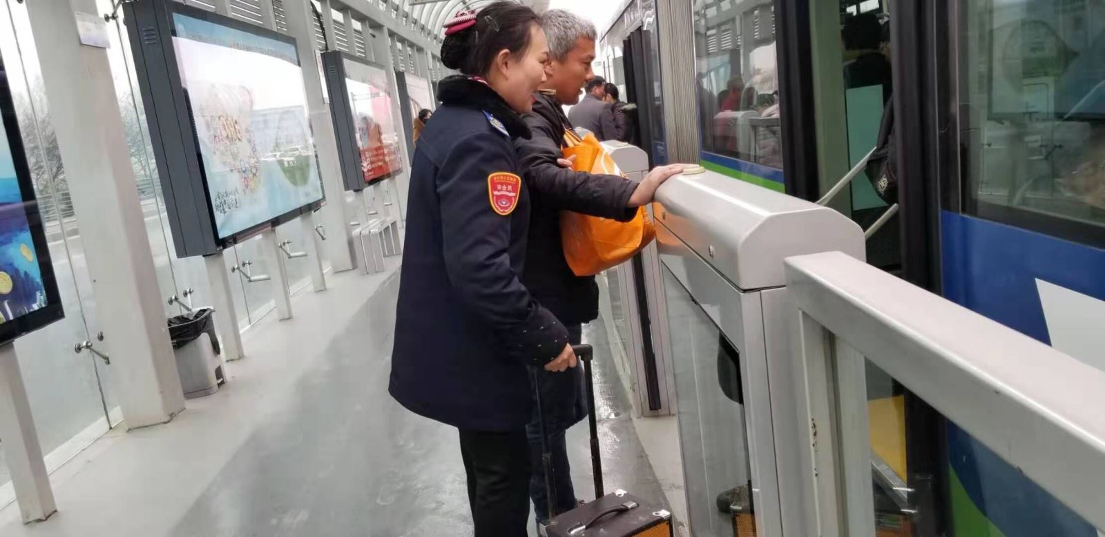 稽查人員在客流密集站點疏導乘客