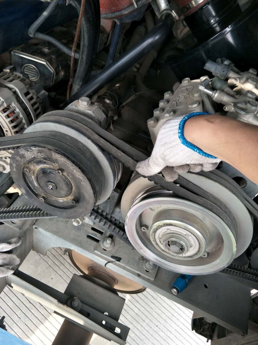 4.用手按壓壓縮機至發(fā)動機皮帶中間位置,8-10mm為正常,按壓超過10mm需要調整張緊度。(傳統(tǒng)燃油氣車輛)
