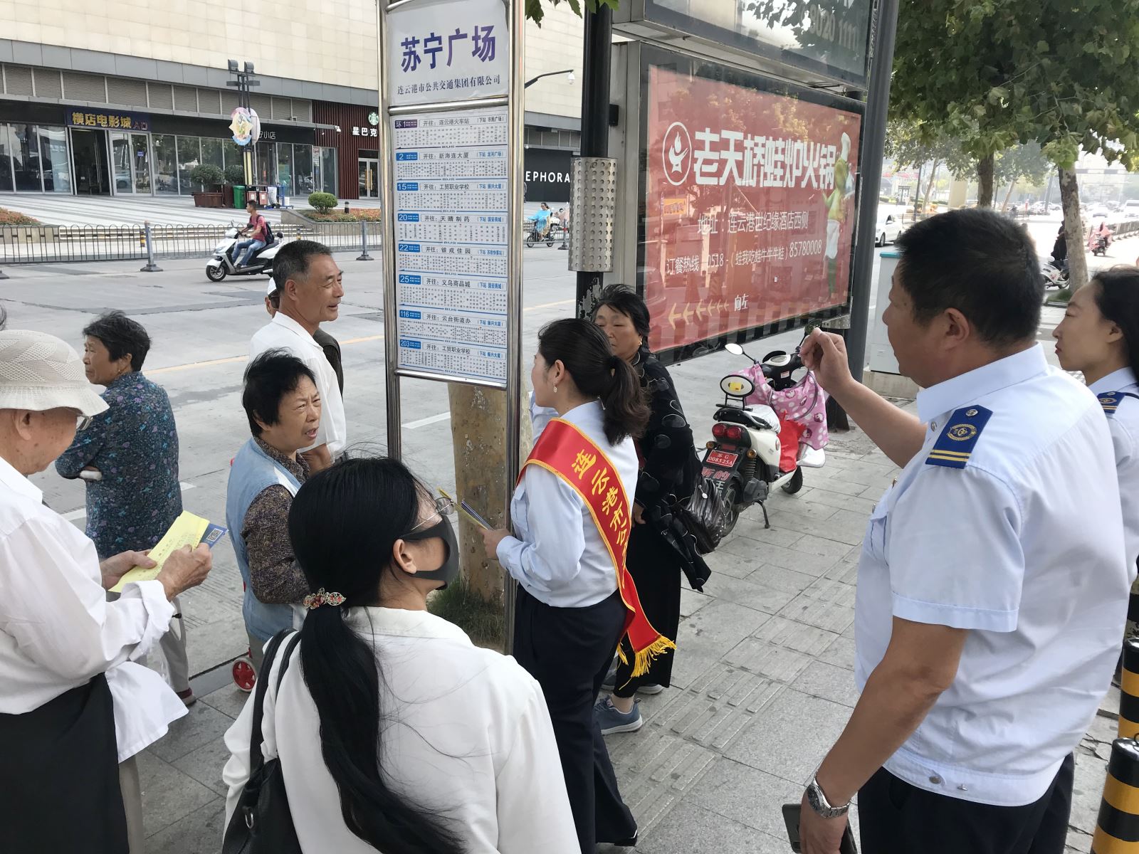 在海州客運站、在海一方公園、市民廣場、龍河廣場4處BRT站臺以及嘉瑞寶廣場、購物中心、第一人民醫院、蘇寧廣場、海州批發市場、步行東街等站6處常規公交站臺,公交集團安排40余名佩戴綬帶的工作人員作為志愿者,現場發放公交出行宣傳周倡議書1000余份、乘客滿意度調查表600余份,志愿者們還協助公交駕駛員積極維持車輛進站秩序,引導乘客自覺排隊上、下車,主動為老弱病殘孕等特殊乘客提供便捷服務,倡導市民遵守乘車秩序,形成良好的社會風尚。