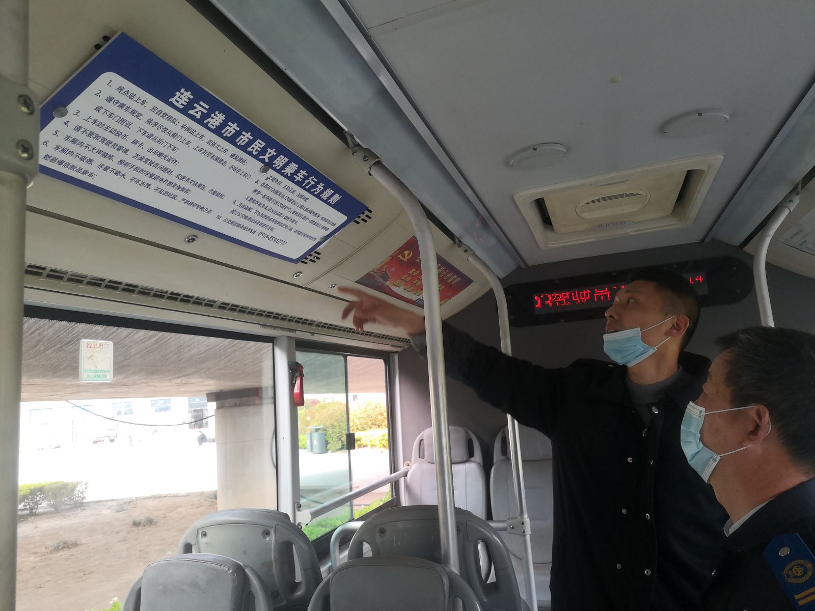 此次檢查由公司經理助理張作、周健帶領分公司管理人員分別到園丁小區公交場站、海濱大道首末站開展創文綜合大檢查。此次檢查分兩大部分:一是對場站環境、辦公室場所進行專項檢查。二是對運營車輛的衛生、創文標識、服務證件及駕駛員著裝、是否規范操作等開展專項檢查。檢查人員發現場站內有少許煙頭和樹葉等垃圾,部分管理人員辦公室較凌亂,車輛車廂空調出風口、駕駛區域、發動機倉還存在衛生死角,另現在天氣早中晚溫差較大,部分駕駛員著裝不規范,檢查人員都認真做好記錄,能現在整改的立即現場整改,不能整改的要求限期整改。